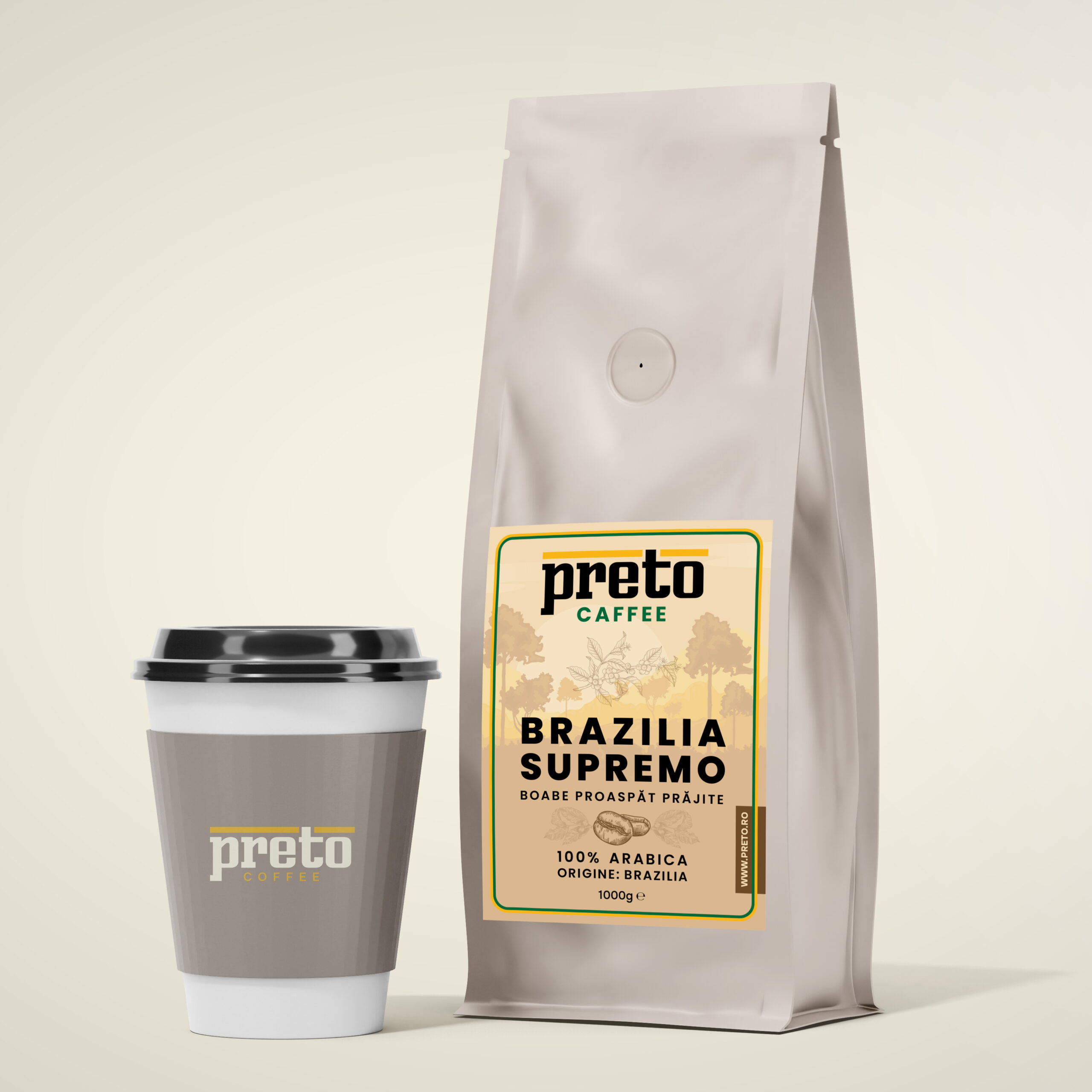 Descoperă Brazilia în fiecare ceașcă! Brazilia Supremo- boabe de cafea proaspăt prajite cu aromă catifelată, note dulci de ciocolată și migdale pentru un gust irezistibil.